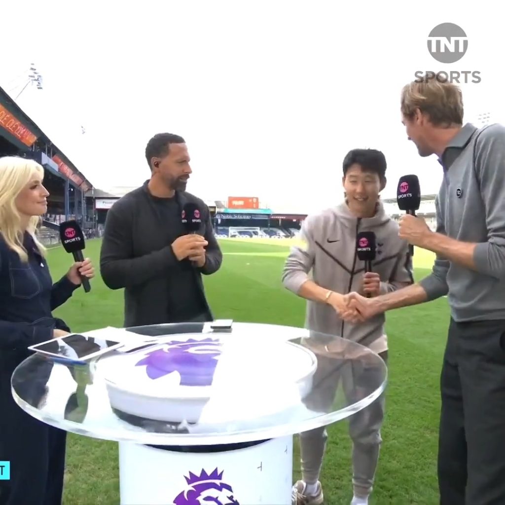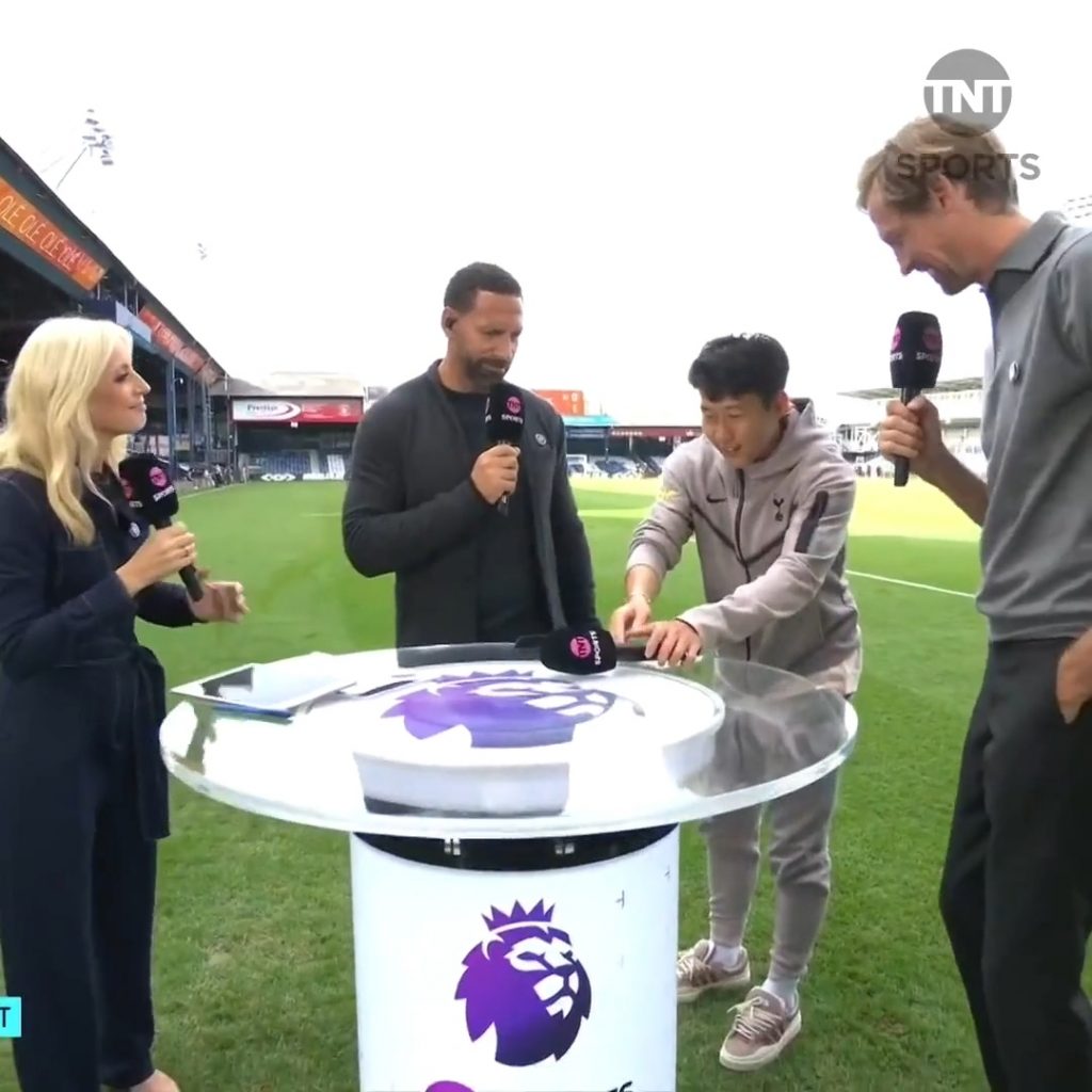 TNT Sports의 출연한 손흥민은 전축구선수 맨유출신 리오퍼디난드와 토트넘과 스토크시티의 축구팀 출신인 피터 크라우치와의 짧은 인터뷰를 하게되었다.